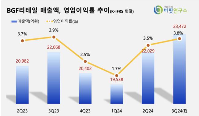 BGF리테일 최근 분기 매출액 및 영업이익률 추이. [이미지=버핏연구소]