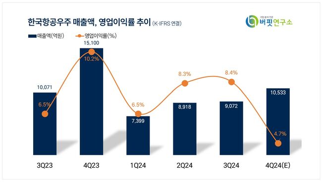 배성조 한화투자증권 연구원은 한국항공우주의 4분기 실적이 매출액 1조533억원(YoY -30.2%), 영업이익 496억원(YoY -67.9%)으로 컨센서스를 크게 하회할 것이라고 추정했다. 공사는 종료됐지만 향후 이라크 기지재건 관련 일회성 비용 발생 가능성, 보잉 파업 영향으로 인한 일시적 PO(거래조건 명시문서) 감소의 환율 상승 효과 상쇄, 수익성 높은 이라크 CLS(계약자 군수지원) 사업의 매출 인식 일부 지연 등을 영업이익 기대치 하회 요인으로 분석했다.