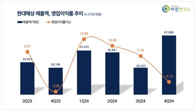 현대해상 최근 분기별 매출액 및 영업이익률 추이. [자료= 버핏연구소]