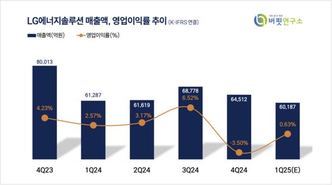 이진명 신한투자증권 연구원은 LG에너지솔루션의 1분기 영업이익을 1129억원(흑자전환)으로 예측하며 컨센서스 376억원을 상회할 것이라 전망했다. 중대형 전지 부문 영업이익은 377억원(흑자전환), 소형 전지 부문 영업이익은 752억원(흑자전환)으로 예상했다.