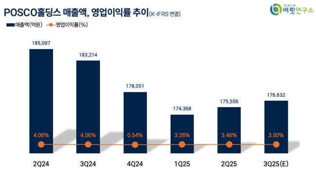 POSCO홀딩스 매출액, 영업이익률 추이. [자료=버핏연구소]