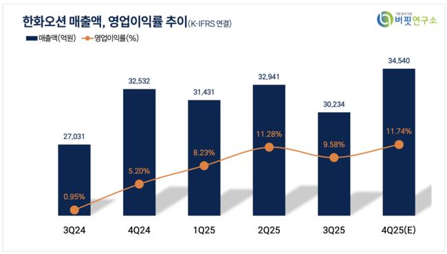 이어 “미국 마스가(MASGA) 프로젝트와 연관된 신규 투자 및 수주 성과에 주목해야 한다”며 “조선 관련 발의 법안 통과에 따른 미 군함 신조 수주와 한화 퓨처프루프(Hanwha Futureproof)를 통한 미국 현지 신규 투자 성과가 기대된다”고 덧붙였다.
