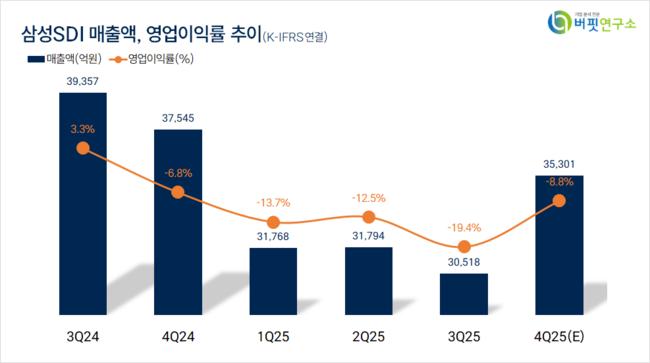 정진수 흥국증권 애널리스트는 “4분기 매출액 3조5301억원(전년동기대비 -6.0%), 영업손실 3107억원(전년동기대비 적자 확대)으로 시장 예상치(영업손실 2331억원)를 하회할 것”이라며 “전지사업부와 전자재료 부문간 실적 엇갈림이 지속되며 전사 실적 반등이 지연되고 있다”고 전했다.