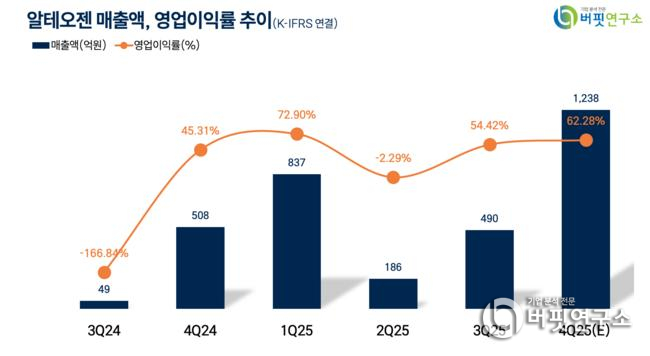 알테오젠 매출액, 영업이익률 추이. [자료=버핏연구소]