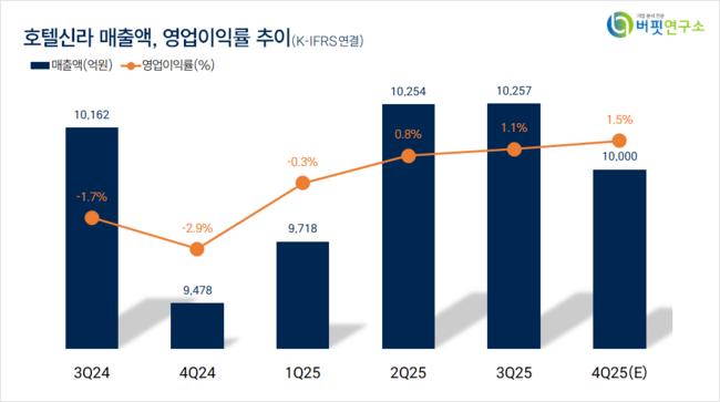 박종렬 흥국증권 애널리스트는 “4분기 연결 매출액 1조원(전년동기대비 +8.8%), 영업이익 146억원(전년동기대비 흑자전환)으로 전분기에 이어 양호할 것”이라며 “지난해 낮은 기저효과, 호텔&레저 부문의 견조한 이익 창출, 면세점 영업손실 축소 때문”이라고 설명했다.