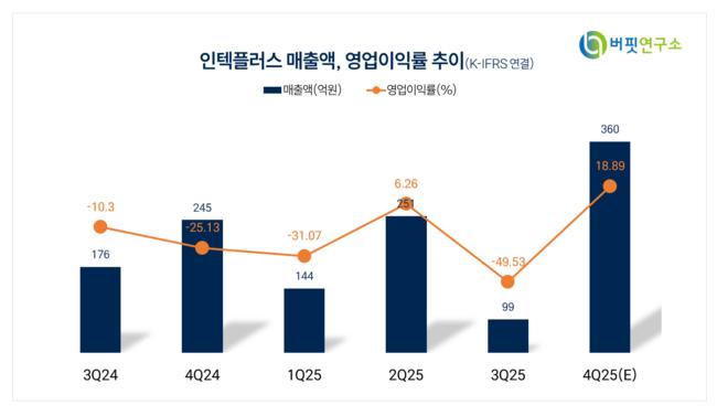 밸류에이션 측면에서 인텍플러스의 2026년 예상 주가수익비율(P/E)은 17.8배로, 국내 동종 업계 평균 23.9배 대비 낮은 수준이다. 신 연구원은 CoWoS 매출 가시화와 일본·대만향 반도체 기판 장비 매출 확대가 현실화될 경우, 이익률 개선에 따른 주가 재평가 가능성이 있다고 분석했다.