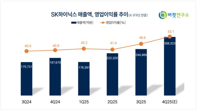김동원 KB증권 애널리스트는 SK하이닉스의 4분기 매출액을 33조원(전년동기대비 +70%), 영업이익을 18조원(전년동기대비 +123%)으로 추산하며 컨센서스 실적을 상회할 것으로 분석했다. 사업 부문별 영업이익은 D램 17조원, NAND 1조원으로 전망했다.