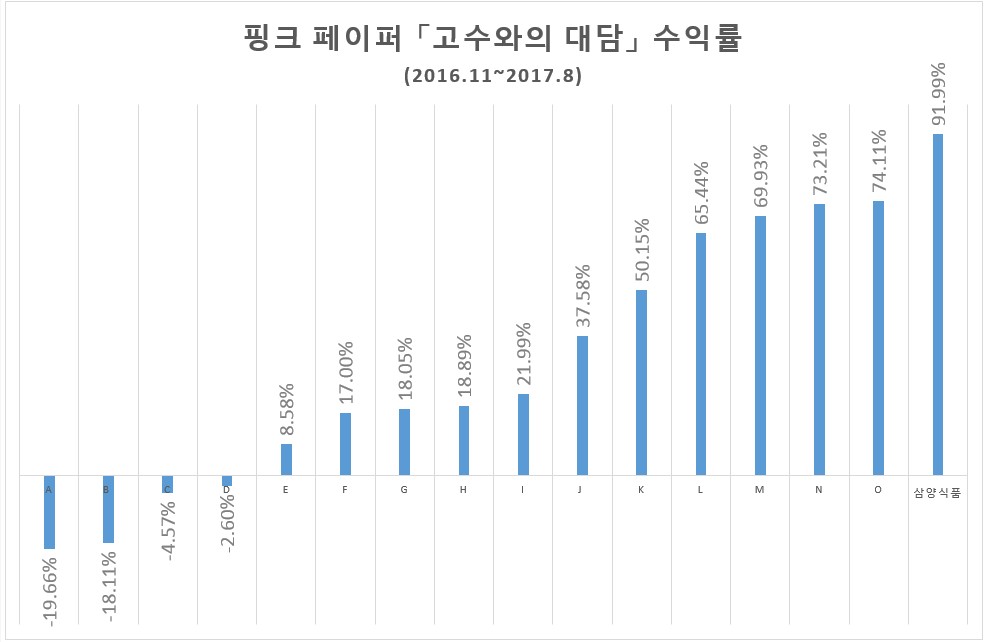 한국 주식 시장의 성공한 투자자들을 인터뷰해 이들이 보유하고 있거나 관심을 갖고 있는 종목을 소개하는 「고수와의 지상 대담」은 타의 추종을 불허하는 적중률을 보여주고 있다. 2016년 11월부터 지난해 8월 사이에 진행된 「고수와의 지상 대담」에서 제시된 16개 종목은 1일 현재 평균 수익률 31.35%를 기록하고 있다. 가장 높은 수익률을 기록한 종목은 91.99%의 삼양식품이다.