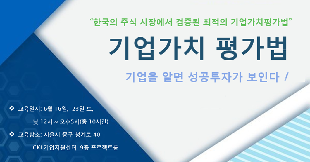 적정 주가 알면 성공 투자 보인다!  「기업가치평가법」 (6/16(토) 개강)