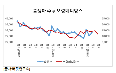 출생아 수 관련종목은 보령메디앙스, 아가방컴퍼니(013990)가 있다.