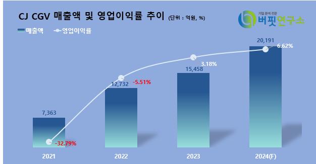 CJ CGV 매출액 및 영업이익률 추이. [이미지=버핏연구소]