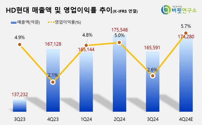 HD현대 매출액 및 영업이익률 추이. [이미지=버핏연구소]