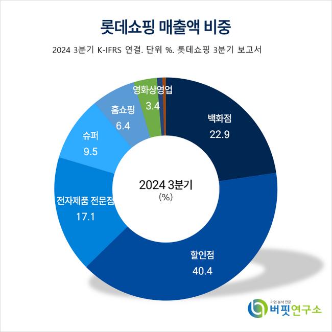 롯데쇼핑 매출액 비중. [자료=롯데쇼핑 3분기 보고서]