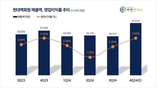 현대백화점 최근 매출액 및 영업이익률 추이[이미지=더밸류뉴스]