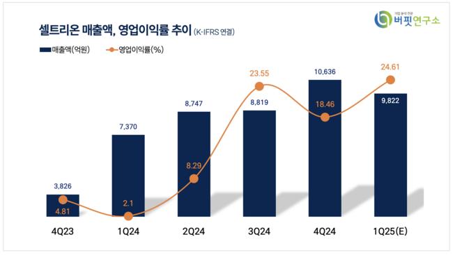 특히 “최근 미국 의약품 품목 관세와 1분기 실적 우려로 주가가 선제 하락했다”며 “1분기 예상 실적은 매출 8731억원(전년대비 +19%), 영업이익 1598억원(영업이익률 18%)으로 컨센서스를 하회할 것으로 보인다”고 평가했다.