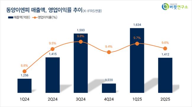 동양이엔피는 지난 2분기 매출액 1412억원, 영업이익 135억원을 기록하며 전년대비 매출액은 0.21% 감소, 영업이익은 동일했다(K-IFRS 연결).