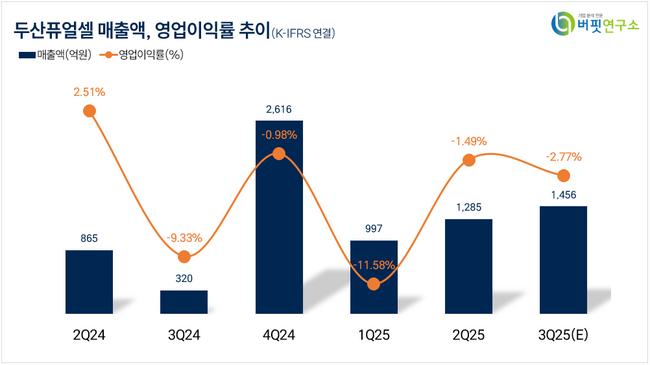 끝으로 “2025년 실적 전망치는 매출액 6080억원(전년동기대비 +47.7%), 영업손실 194억원(적자 확대), 순손실 212억원이지만, 2026년에는 SOFC 매출 확대에 힘입어 영업이익 16억원, 순손실 축소를 예상한다”며 “2027년부터는 본격적인 흑자전환이 가능할 것으로 관측된다”고 설명했다.