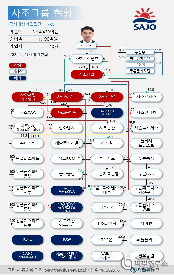 사조그룹 지배구조와 현황. 2025. 6. 단위 %. [자료=공정거래위원회]
