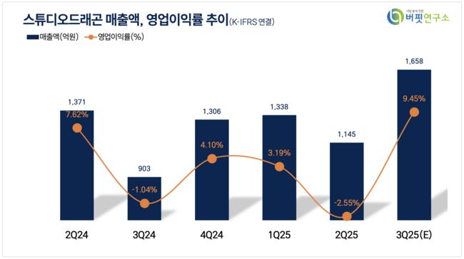 끝으로 "국내외 콘텐츠 공급 플랫폼 다변화를 통한 콘텐츠 제작 업황도 개선이 예상되어 투자의견을 유지한다"고 제시하며, “26년 매출액 6720억원, 영업이익 600억원으로 크게 확대될 전망이다”고 밝혔다.