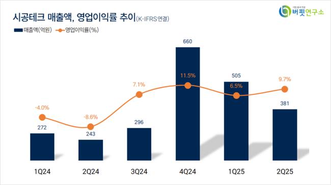 시공테크는 지난 2분기 매출액 381억원, 영업이익 37억원으로 전년동기대비 매출액은 56.79%, 영업이익은 58억원 증가했다(K-IFRS 연결).