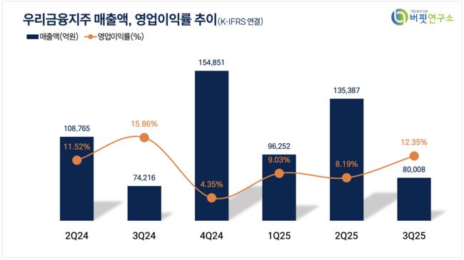 우리금융지주 매출액 및 영업이익률. [자료=버핏연구소]
