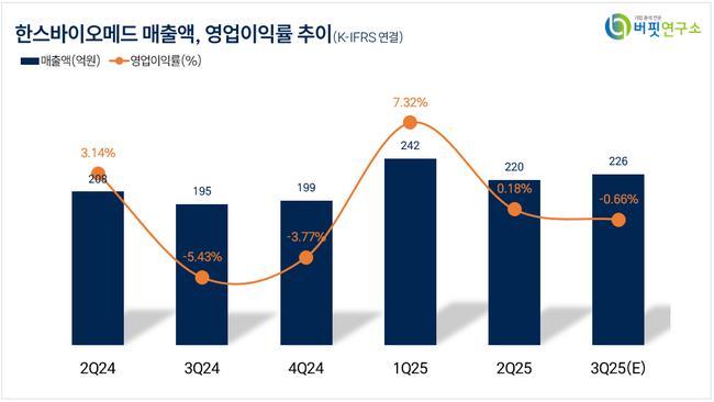 끝으로 “2025년 한스바이오메드 실적을 매출액 883억원, 영업이익 6억원으로 전망했으며, 셀르디엠이 본격 반영되는 2026년에는 영업이익이 133억원까지 증가할 것”이라며 “회사가 제시한 28기(2025.10~2026.9) 가이던스는 셀르디엠 매출을 30억~40억원으로 보수적으로 포함한 수치여서 실제 실적은 상향될 가능성이 높다”고 덧붙였다.