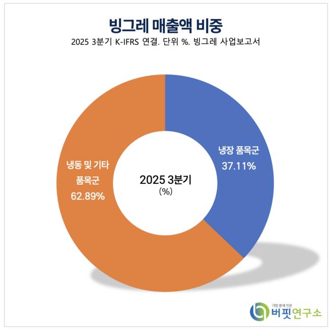 빙그레 매출액 비중. [자료=버핏연구소]그는 “품목별로는 커피를 제외한 가공유, 발효유, 주스 등 대부분의 냉장 제품 매출이 감소한 것으로 파악되는 반면, 냉동 및 기타 매출은 계절 요인과 우호적인 채널 믹스 영향의 내수 증가 및 베트남 등 동남아 시장 호조로 전년동기대비 15% 증가했다”고 분석했다.