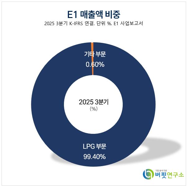 E1은 액화석유가스의 수출입, 저장, 운송, 판매 및 부동산 임대업을 영위하고 있다. 최근 정유사들의 정제기술 발전과 내수 시장 경쟁 심화에 따른 수익성 개선을 위해 페이퍼트레이딩(Paper Trading) 마진 고정화, 원재료 수급처 다변화, 석화용 공급량 증가 및 액화석유가스 저장탱크 증설을 추진하고 있다.