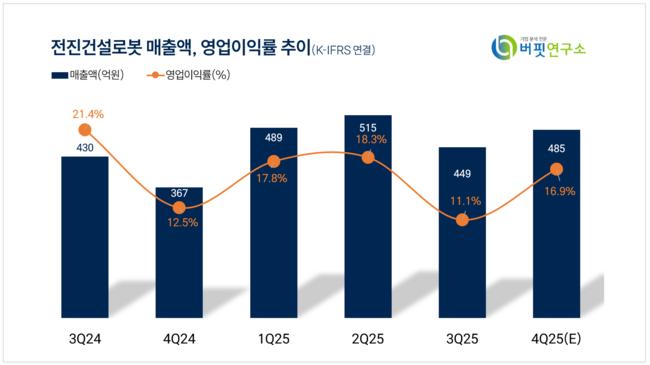 또 "CPC 대응이 가능한 업체가 제한적인 북미 건설 장비 시장 환경 속 인프라 투자 확대 및 데이터센터 재편이 지속될 것으로 기대되어 전진건설로봇의 수혜는 이어질 전망이다"며 "튀르키예와 우크라이나 등 글로벌 재건 프로젝트들도 하나씩 재개되고 있어 이에 따른 수혜도 예상된다"고 덧붙였다.