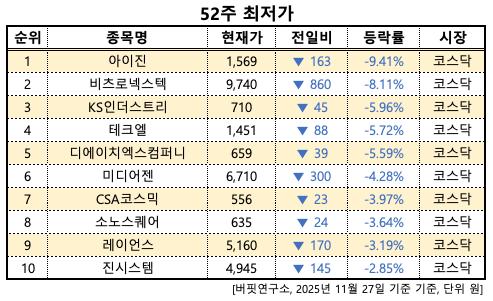 52주 최저가. [이미지=버핏연구소]