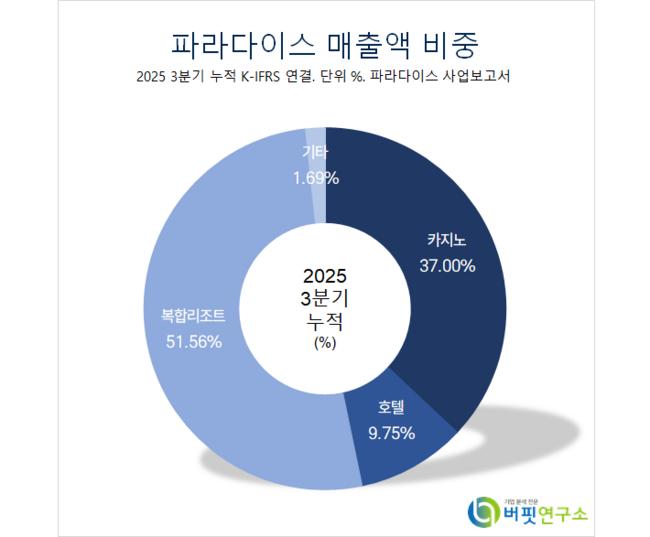파라다이스 매출액 비중. [자료=버핏연구소]