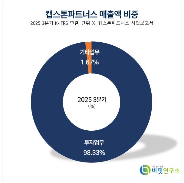윤유동 NH투자증권 애널리스트는 “2025년 9월 기준 벤처캐피털 업계 누적 신규펀드 결성액이 4.8조원으로 회복 조짐을 나타냈다”며 “정부가 150조원 규모의 국민성장펀드를 조성하는 등 모험자본 공급을 확대하고 있어, 캡스톤파트너스의 운용자산(AUM) 증가 속도가 더욱 빨라질 수 있다”고 밝혔다.