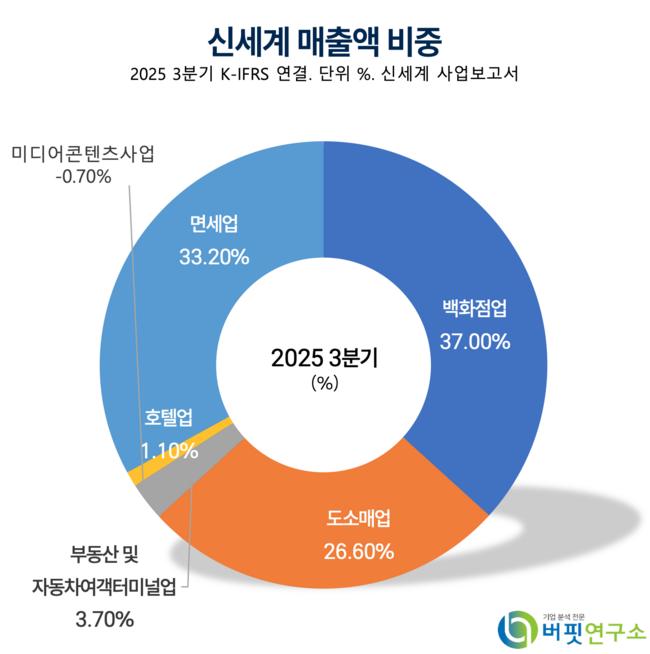 신세계는 지난 1955년 설립된 종합 유통기업으로 백화점 13개점을 운영하고 있다. 주요 사업은 백화점, 도소매, 면세 등이며, 매출 비중은 각각 38.1%, 27.1%, 34.8%다. 고객 중심 전략을 기반으로 콘텐츠 혁신과 신사업 발굴을 통해 수익성 강화를 추진하고 있다.