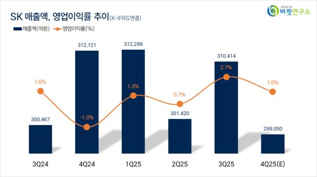박종렬 흥국증권 애널리스트는 “4분기 연결 매출액 29조9000억원(전년동기대비 -1.2%), 영업이익 4680억원(전년동기대비 흑자전환)으로 전분기에 이어 양호한 실적을 기록할 것”이라며 “매출액은 SK이노베이션(SK E&S 합병 효과)의 외형 성장에도 SK네트웍스(트레이딩 부문 구조조정, 렌터카 사업부문 매각), SK텔레콤 등 일부 자회사들의 외형 감소 때문에 줄어들 것”이라고 전망했다.