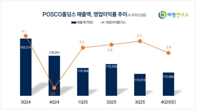 POSCO홀딩스 매출액 및 영업이익률 추이. [자료=버핏연구소]