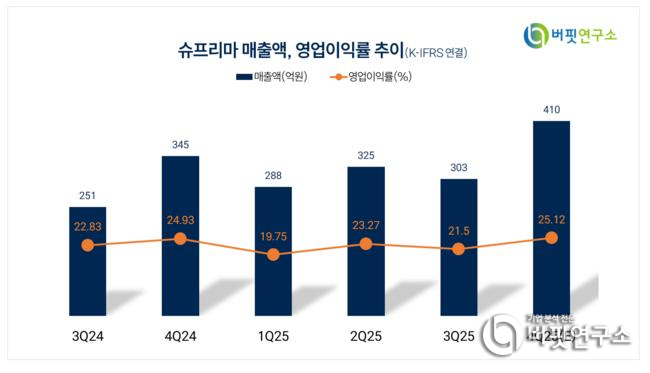 슈프리마 매출액 및 영업이익률. [자료=버핏연구소]