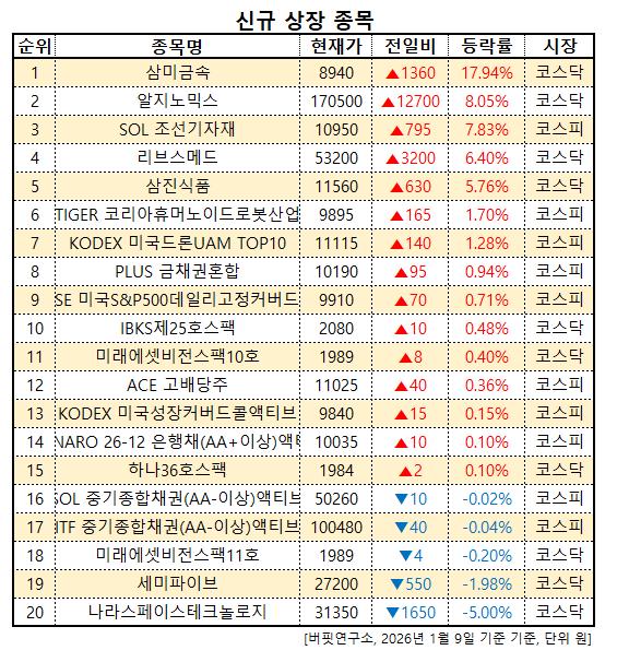 신규 상장 목록. [이미지=버핏연구소]