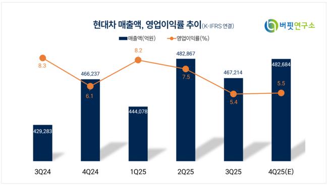 현대차 매출액 및 영업이익률 추이. [자료= 버핏연구소]