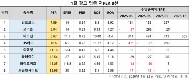 1월 광고주 저PER 8선. [자료=버핏연구소]