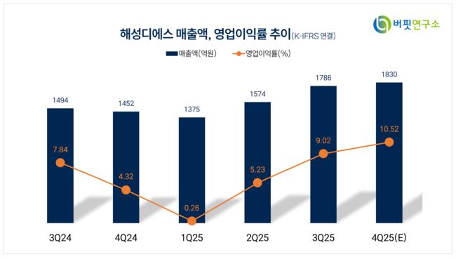 그는 해성디에스의 2025년 연간 매출은 6533억원으로 전년 대비 증가하고, 2026년에는 8224억원까지 확대될 것이라고 전망했다. 사업별로는 리드프레임이 안정적인 수익원 역할을 하며 2026년 매출 5936억원을 기록할 것으로 예상된다.