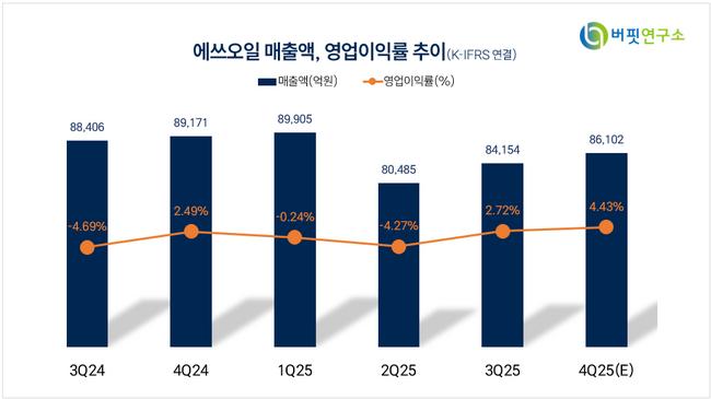윤재성 하나증권 연구원은 “25년 4분기 영업이익은 4254억원으로 컨센서스를 11% 상회했다”며 “하나증권 추정치에 소폭 미치지 못한 것은 유가하락의 역래깅 효과(제조원가 보다 판매가가 낮아 손실을 보는 것)의 영향이다”라고 밝혔다.