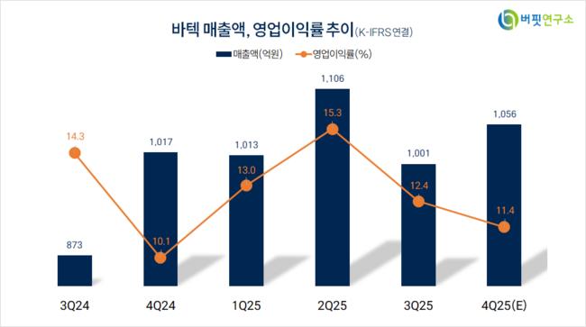 바텍 최근 분기별 매출액, 영업이익률 추이. [자료=버핏연구소]